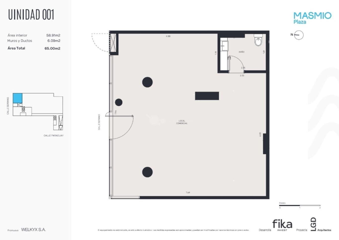 Metraje: 65 m2 propios con 8 m2 de Frente.